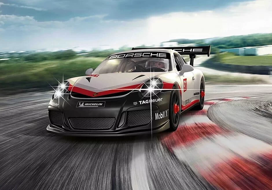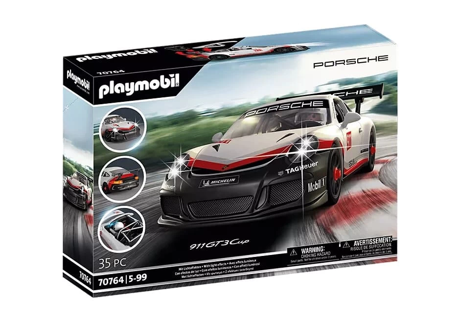 Atenci贸n a los aficionados a los coches deportivos: 隆El Porsche 911 GT3 Cup convierte la habitaci贸n de los ni帽os y ni帽as en un circuito de carreras! Su dise帽o 煤nico, los colores t铆picos del automovilismo de Porsche y los detalles aerodin谩micos lo hacen inconfundible. Al igual que el original, el modelo Porsche 911 GT3 Cup de PLAYMOBIL tiene un aler贸n trasero ajustable en altura. El techo es desmontable y la iluminaci贸n delantera, trasera e interior lleva el dise帽o de luces a una nueva dimensi贸n. Con este potente coche deportivo GT, los entusiastas de los deportes de motor pueden ahora comenzar su propia serie de carreras en casa. El set de juego incluye un Porsche 911 GT3 Cup, una figura PLAYMOBIL con un traje de carreras Porsche y casco, un extintor, una llave de impacto de aire comprimido y muchos otros potentes extras para divertirse en las carreras. Se necesitan tres pilas de 1,5 V para el m贸dulo de luz (no incluidas).