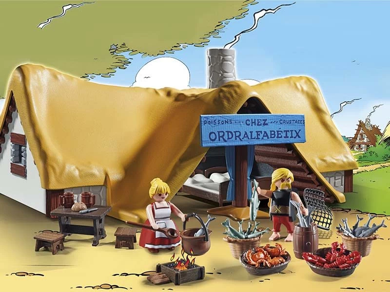La aldea alberga una serie de habitantes singulares. Entre ellos está el excitable pescadero Ordenalfabetix y su esposa Elosumarin. Ordenalfabetix es rubio, de complexión robusta y lleva un caracterÃstico bigote. Es un agradable galo, a menos que alguien cuestione la frescura de su pescado. En caso de desacuerdo, siempre tiene un pez a mano para defenderse. La cabaña de Ordenalfabetix está equipada con dos camas, asà como una chimenea, una mesa y taburetes de madera. En varias cestas, el pescado y el marisco están listos para la venta. Con el playset Astérix: Cabaña de Ordenalfabetix, los niños pueden sumergirse en el colorido mundo de Astérix y recrear divertidas escenas del famoso cómic. Con la nueva Cabaña de Ordenalfabetix, los fans también tienen la oportunidad de ampliar su aldea gala.