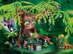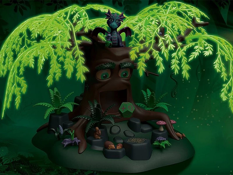 Bien escondido en el misterioso bosque se encuentra el fantástico y viejo Árbol de la sabiduría. Si las hadas están perdidas, piden consejo a este mágico habitante del bosque. El único problema es que este árbol torcido siempre está cansado y habla en clave. Para despertarlo, Forest Fairy lanza el cubo mágico desde arriba a la copa del árbol, gira la rama del lado hacia atrás y el Árbol de la Sabiduría abre los ojos. Con el impulso, el cubo sale de su boca y da la respuesta a la pregunta formulada. Al menos si sabes leer los símbolos. Quizá el simpático dragoncito que vive en la copa del árbol también ayude a descifrar la respuesta. Un conjunto mágico lleno de infinitas posibilidades de juego para todos los niños imaginativos. El set de figuras de juego contiene un Forest Fairy con alma de zorro, un Árbol de la Sabiduría con párpados móviles, escondite secreto y Cubo de Rubik, un pequeño dragón y muchos más mágicos extras. Las ramas del árbol brillan en la oscuridad.