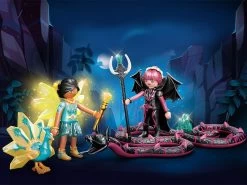 Las encantadoras Hadas de Cristal viven junto a sus fieles animales del alma en paz y tranquilidad en el idílico bosque de las hadas. Los animales del alma y las hadas están unidos por un vínculo muy especial. Pero las siniestras Bat Fairies intentan encontrar la fuente de energía mística y robar su cristal. Al hacerlo, ponen el mundo de las hadas en gran peligro. Una de las siniestras Bat Fairies acaba de descubrir dónde está la fuente de energía mágica. Con sus alas de murciélago, se eleva a los cielos para contar a sus amigos su hallazgo. ¿Podrán la valiente Hada de Cristal y su pavo real de cristal detenerlos a tiempo? Aventuras de encantadoras hadas esperan a los niños imaginativos. El set de figuras de juego contiene un Crystal Fairy con animal de alma de pavo real de cristal, un Bat Fairy con animal de alma de serpiente, varita de hada y muchos otros extras.