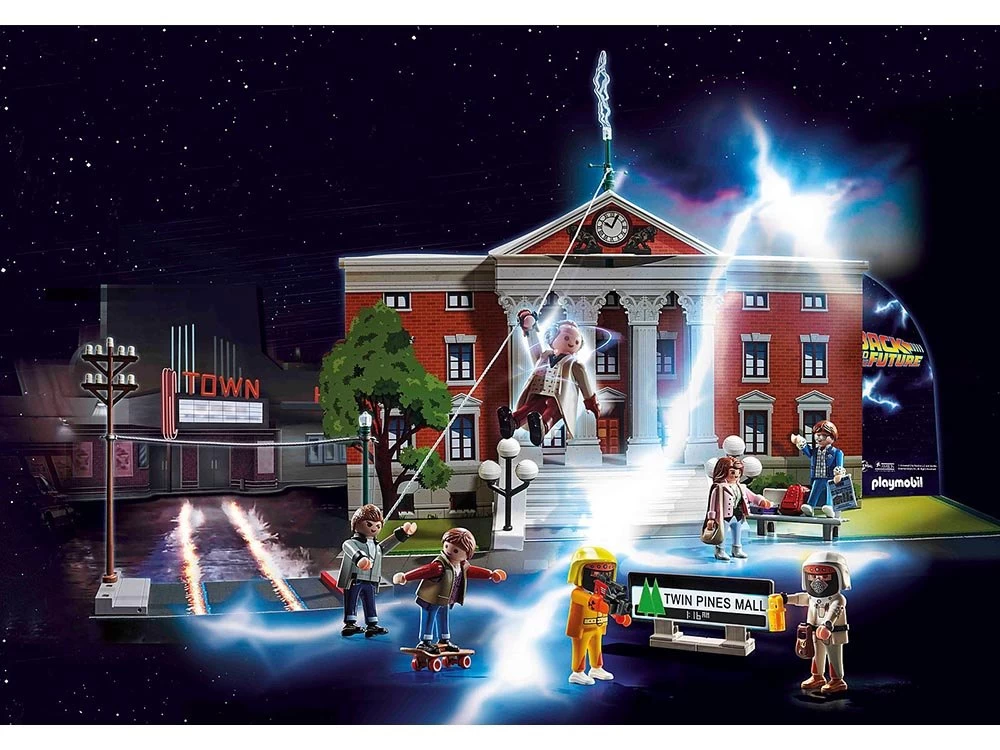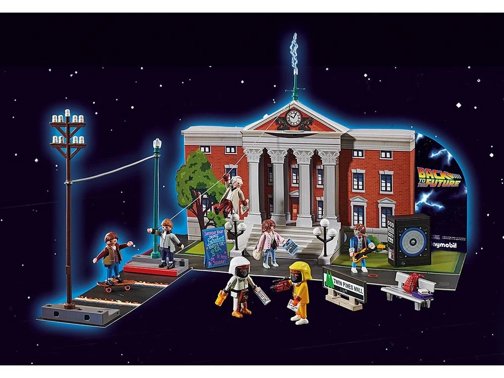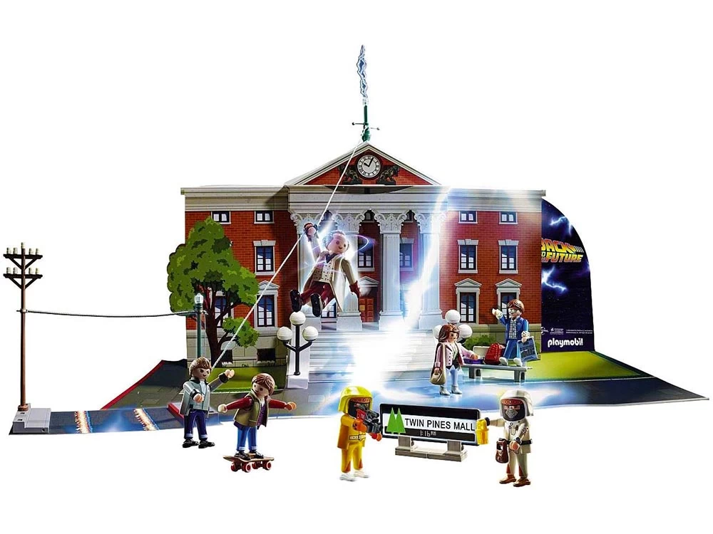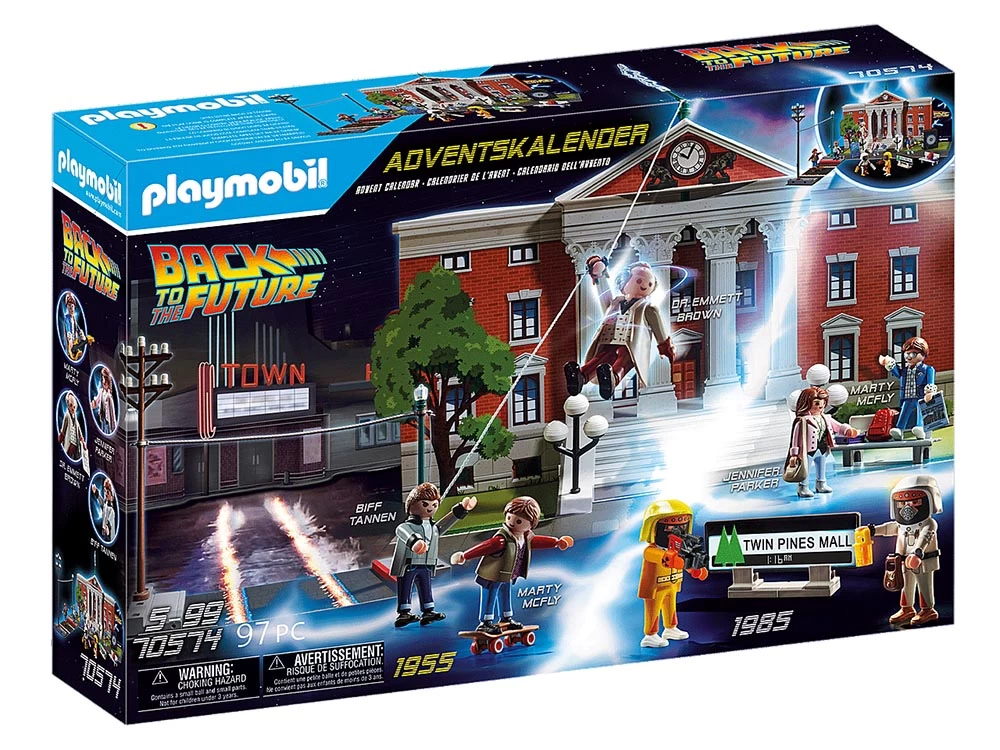 ¡Empieza la cuenta atrás para Navidad con un emocionante calendario de adviento Back to the Future de PLAYMOBIL! Detrás de cada puerta hay un regalo, desde figuras hasta accesorios geniales, proporcionando a los niños y niñas (y adultos) una diversión única en un viaje en el tiempo durante 24 días hasta el gran día. Una vez descubiertas todas las sorpresas, la caja se convierte en el telón de fondo de la legendaria escena de la plaza del pueblo. ¡Recrea icónicas escenas de Regreso al Futuro y Regreso al Futuro II! Incluye a Marty McFly y Jennifer Parker conversando, y Doc Brown y Marty en el aparcamiento del centro comercial Twin Pines de 1985. Para fans que quieren viajar un poco más atrás en el tiempo al año 1950, Marty puede conocer y escapar de Biff en su monopatín. ¡Son casi las 10:04 y Doc Brown necesita llegar a la torre del reloj, aprovechar el rayo y canalizarlo en el condensador de fluzo! Además, cada calendario viene con una imagen con efecto lenticular. ¡Mira cómo la familia McFly desaparece ante tus ojos!