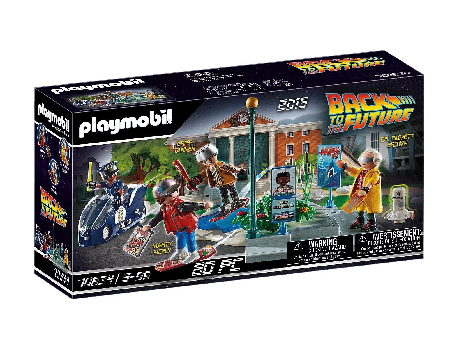 Con los personajes Marty McFly, Dr. Emmett Brown y Griff Tannen del año 2015. Incluye una postal de coleccionista con efecto lenticular para los verdaderos fans.
