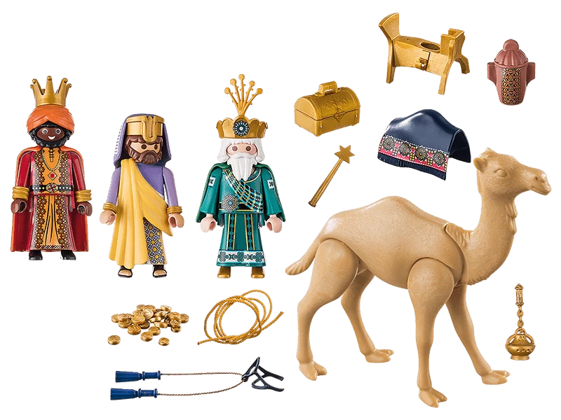 Los 3 reyes magos ya están elegantemente vestidos para entregar el incienso, oro y mirra.