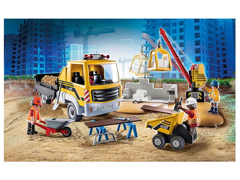 Hoy hay de nuevo un mont贸n de trabajo en el sitio. Pero las cosas van bien gracias al dumper, mini-dumper y gr煤a de carga. Cada trabajador de la construcci贸n asume una tarea diferente por sus propios medios: la gr煤a de carga lleva ladrillos pesados para la alba帽iler铆a, el mini dumper se utiliza para eliminar el material de excavaci贸n y el dumper se utiliza para grandes cantidades de terreno y material de construcci贸n. Gracias a la buena cooperaci贸n del equipo de construcci贸n, el nuevo muro se construy贸 r谩pidamente. Un juego vers谩til para un mont贸n de acci贸n de construcci贸n!