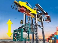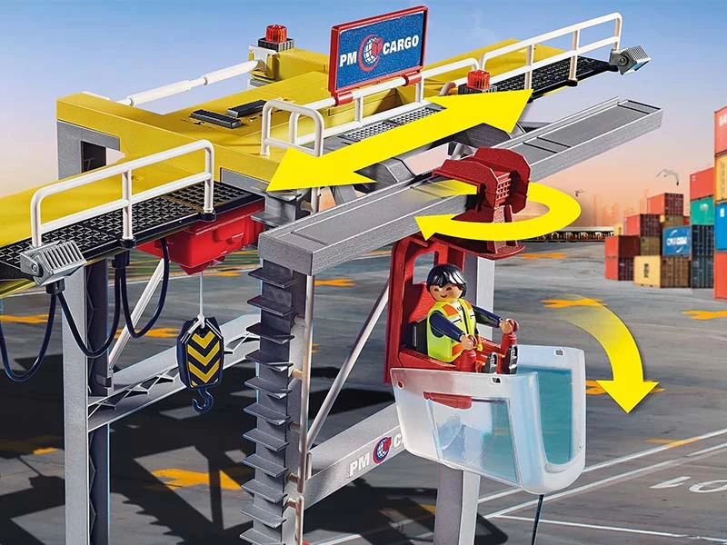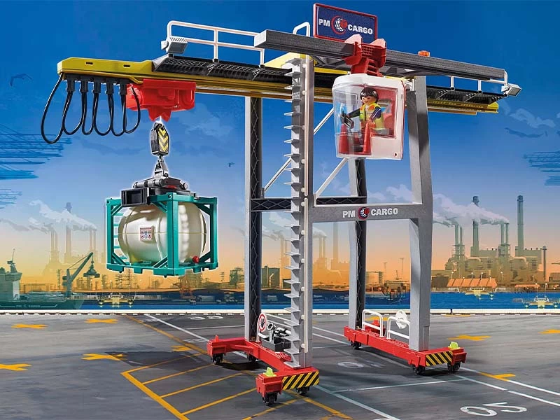 El puerto estĂĄ siempre lleno de actividad. Cada minuto llegan nuevos buques portacontenedores y hay que cargarlos y descargarlos rĂĄpidamente. Pero gracias a la grĂșa elĂ©ctrica de carga, el apretado calendario puede cumplirse fĂĄcilmente. Alegremente, el operador de la grĂșa se sienta a una altura vertiginosa en su cabina y levanta sin esfuerzo incluso los contenedores mĂĄs pesados hasta el barco que espera. Terminado, el viaje puede continuar. AsĂ, las rutas de carga entre la tierra, el agua y las zonas de almacenamiento pueden cambiarse de forma rĂĄpida y segura. El set de juego incluye una figura PLAYMOBIL, una grĂșa de carga elĂ©ctrica, un contenedor con estructura de acero y barril, un chaleco protector y muchos otros extras. Con ruedas, la grĂșa puede desplazarse longitudinalmente para cargar varios contenedores seguidos.
