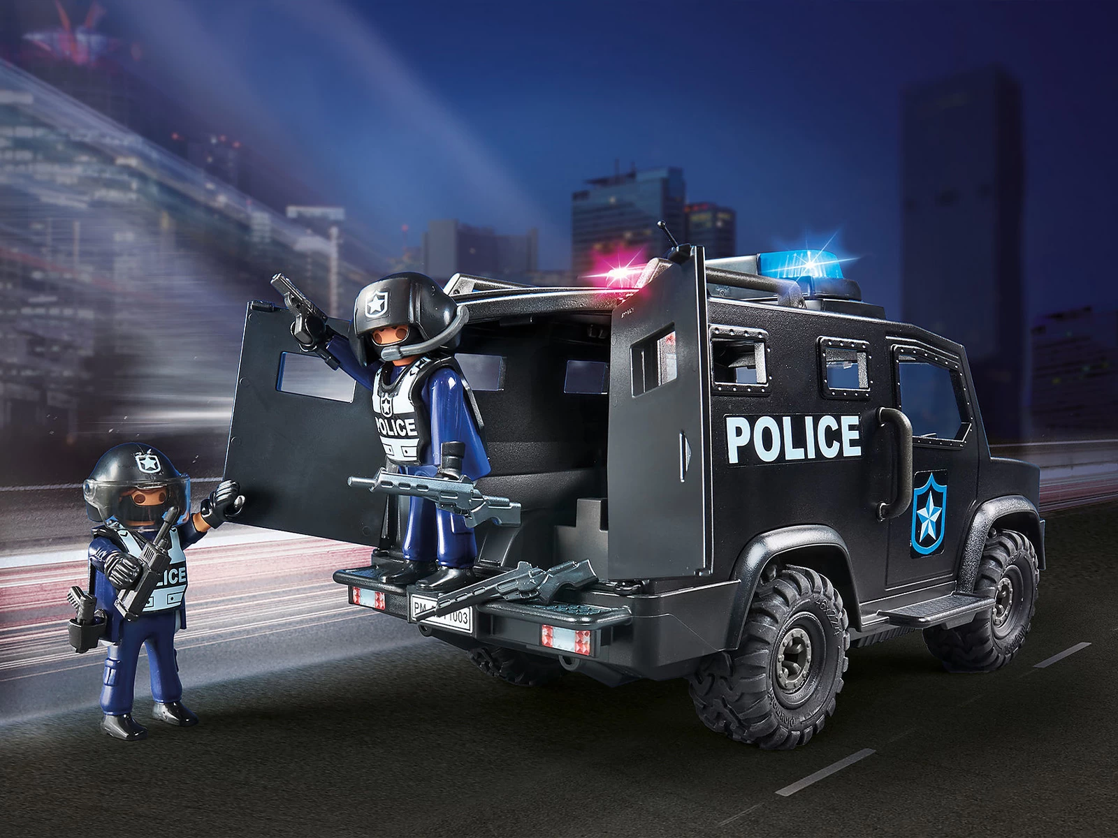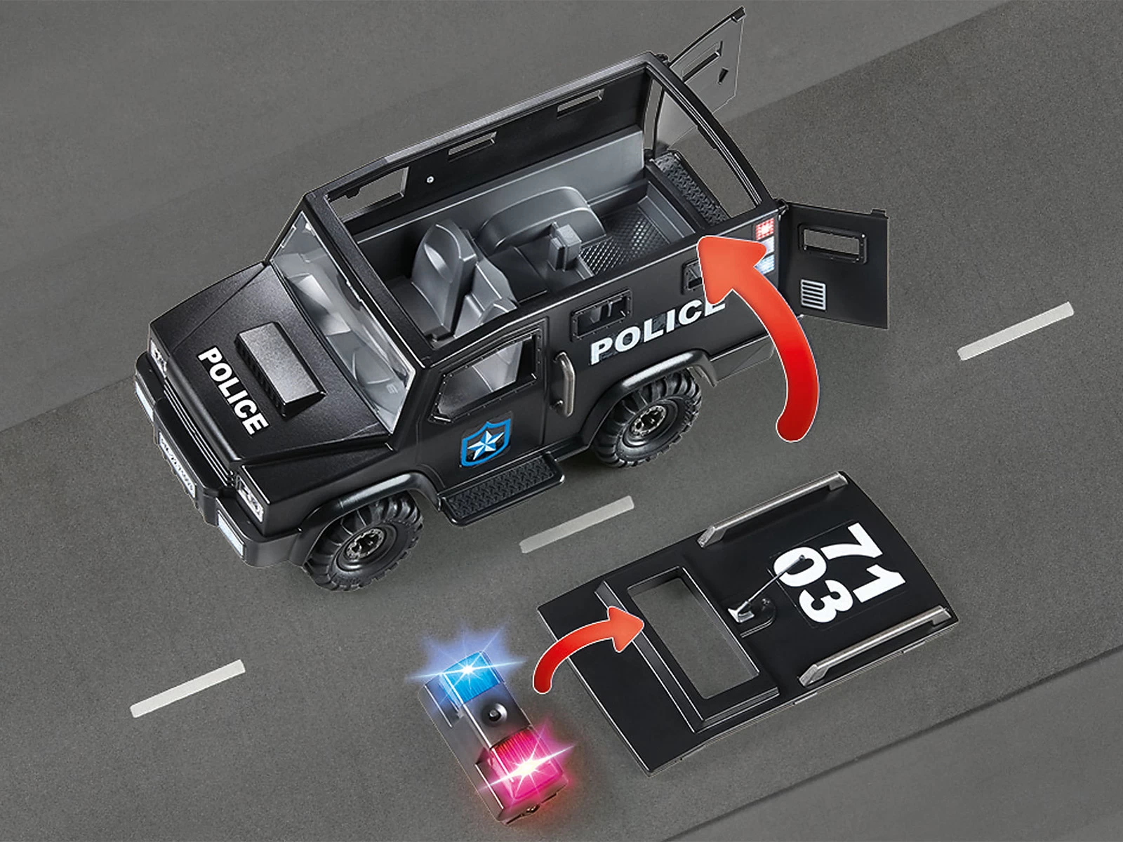 El techo es desmontable y las puertas traseras se pueden abrir. El módulo de luz y sonido requiere una micro batería de 1,5 V (no incluida). Dimensiones: 24 x 12,5 x 13 cm (LxPxH).