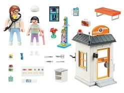 Bienvenidos a la consulta de pediatría de PLAYMOBIL. Aquí los pequeños y pequeñas pacientes son cuidados con mucho mimo. Una niña tuvo un accidente en la calle. La amable pediatra la examina con cuidado en la camilla y le ausculta el pecho con el estetoscopio. A continuación, le venda la herida de la cabeza y le pone una escayola en el brazo roto. Todo volverá a curarse, pero de momento son necesarios unos días de reposo. Los Starter Packs de PLAYMOBIL son una introducción ideal al gran y colorido mundo de PLAYMOBIL. Los sets incluyen la parte de un edificio, dos figuras y grandes extras, se montan rápidamente y están listos para jugar inmediatamente. Gracias a los accesorios adecuados a la edad, los Packs de iniciación son ideales para niños y niñas a partir de cuatro años. Con etiquetas de escayola para pegarlas individualmente.