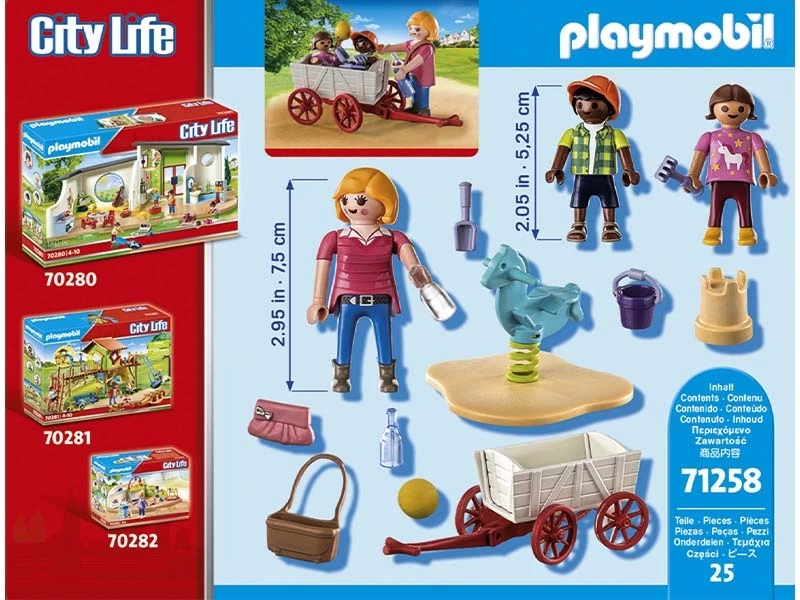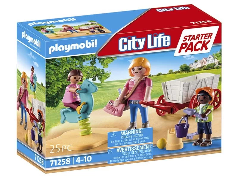 Conviértete en educador o educador con el Starter Pack de PLAYMOBIL. Junto con su profesor, los niños difrutan en el patio del recreo. Los juguetes de arena y la botella de agua están guardados de forma segura en el carro. En cuanto llegan a su destino, los niños saltan al arenero y al divertido balancÃn. Un detallado juego para niños y niñas a partir de 4 años. El set incluye tres figuras PLAYMOBIL, un carro de mano, juguetes de arena, bolsa, gorra y otros bonitos extras para un juego de rol imaginativo. La botella de agua se puede guardar en la bolsa de hombro. Los Starter Packs son la perfecta introducción al juego imaginativo y al centro del universo PLAYMOBIL. Los sets contienen figuras de juego y accesorios para las diferentes lÃneas de PLAYMOBIL, son rápidos de montar y están listos para jugar de inmediato.