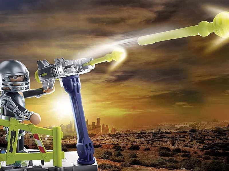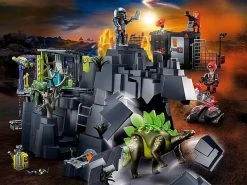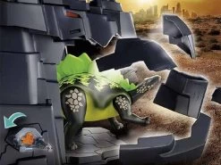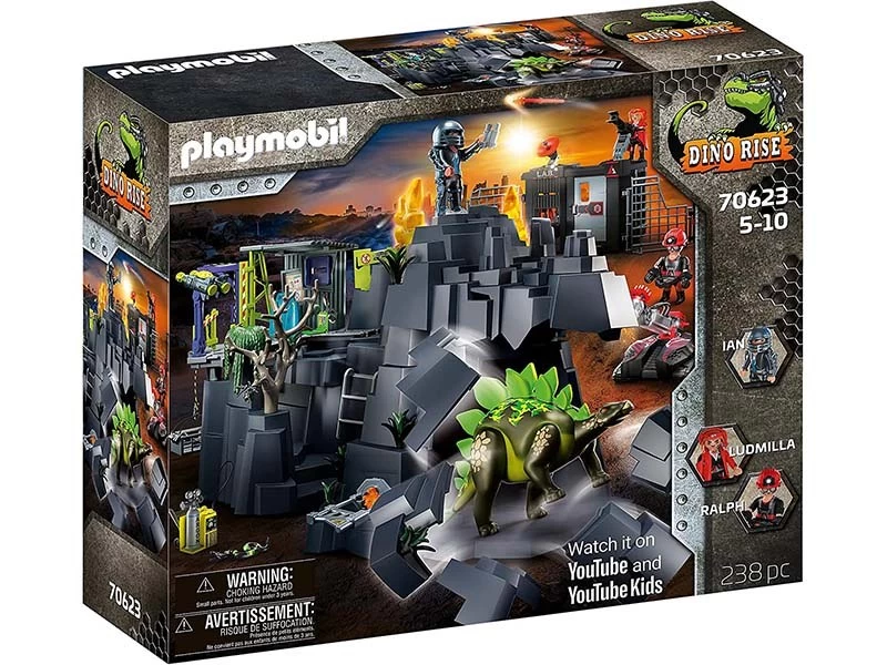 El Equipo Dino Rise es todo un doble poder dino-humano. Una y otra vez, la codiciosa Ludmilla intenta tomar el portal en Dino Rock con sus robots de batalla. Una y otra vez, la codiciosa Ludmilla intenta tomar el portal en Dino Rock con sus robots de batalla. Pero el Equipo Dino Rise est谩 atento y se enfrenta valientemente a Ludmilla y a la Corporaci贸n Cometa. La casa del 谩rbol en Dino Rock sirve como base de operaciones de los adolescentes. En un escondite bien camuflado en la pared de la roca, planean su estrategia de defensa. Se abastecen de suministros y herramientas a trav茅s del montacargas giratorio. Un puente basculante conduce a un escondite secreto en una cueva. Si la Corporaci贸n Cometa ataca, el doble ca帽贸n giratorio est谩 listo para la defensa. En caso de emergencia, el tobog谩n secreto bajo el puente conduce al exterior. Por supuesto, el Equipo Dino Rise nunca ir铆a a la batalla sin sus amigos dinosaurios. Para liberar al Stegosaurus de la roca, Ian inserta una piedra de energ铆a en la llave, la introduce en la roca y la hace girar. Con un enorme estruendo, los trozos de roca se abren y el gigante prehist贸rico salta de la roca con un gigantesco rugido de dinosaurio. La Comet Corporation est谩 de enhorabuena. El set de juego incluye las figuras del Team Dino Rise, Ian, Ludmilla y Ralph, un Stegosaurus, un laboratorio de pruebas con estaci贸n de an谩lisis, piedras de energ铆a, un veh铆culo de perforaci贸n, as铆 como una roca de dinosaurio con varias funciones de luz, sonido y vibraci贸n y muchos m谩s extras para vivir aventuras de dinosaurios llenas de acci贸n.