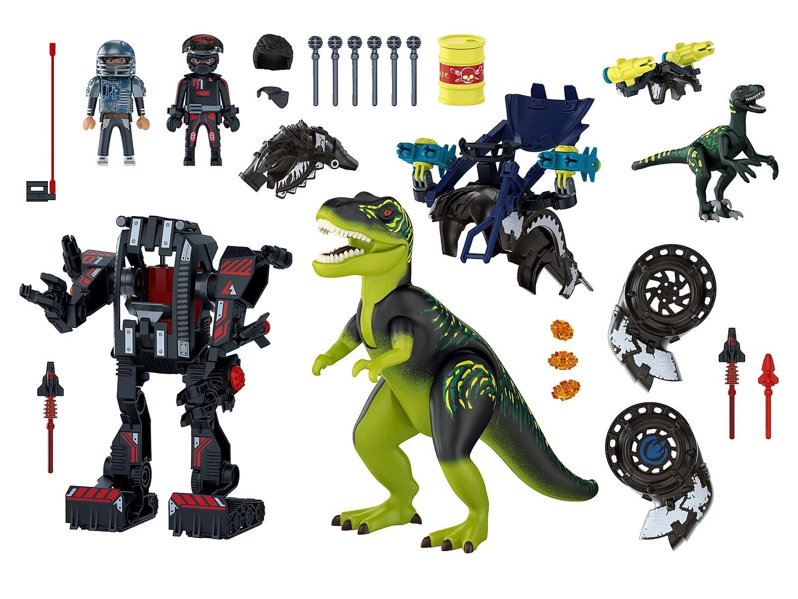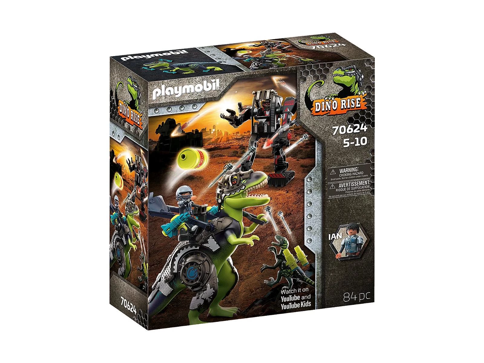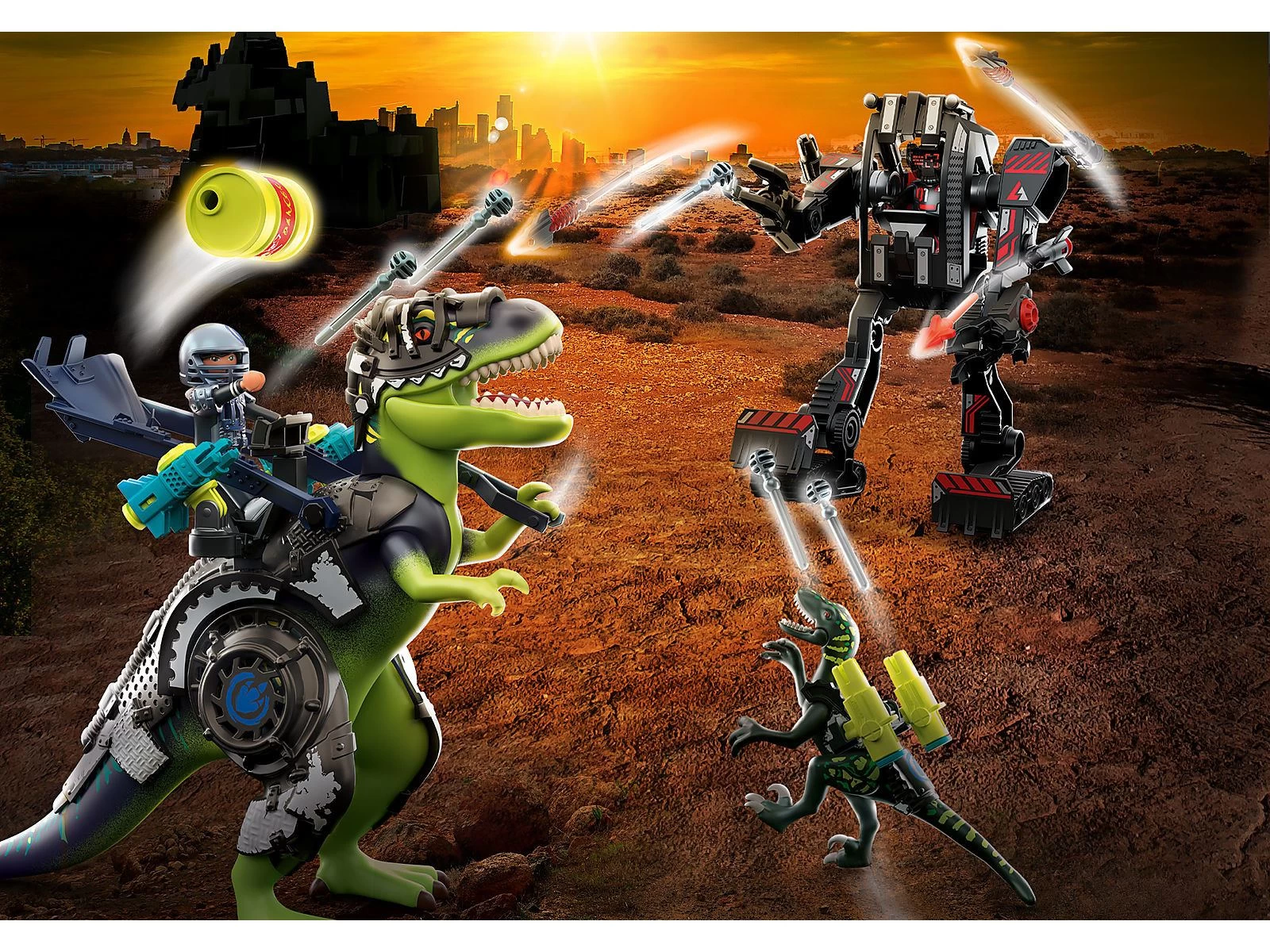 Atención: ¡el T-Rex está atacando! ¿El T-Rex? Oh no, es el robot de combate hipermoderno de la Corporación Comet y quien lo controla no tiene nada bueno. ¡La máquina de combate robot está en curso de destrucción! ¿Quién va a detenerlo? De repente, el intrépido Ian bloquea el camino de la máquina, y no está solo. Ian está sentado a lomos de un auténtico T-Rex con una fuerte armadura protectora de titanio, equipado con cañones y una catapulta. Junto con el dinosaurio y el equipo de combate superavanzado, los dos se enfrentan valientemente a la máquina. ¡Comienza una batalla de gigantes!