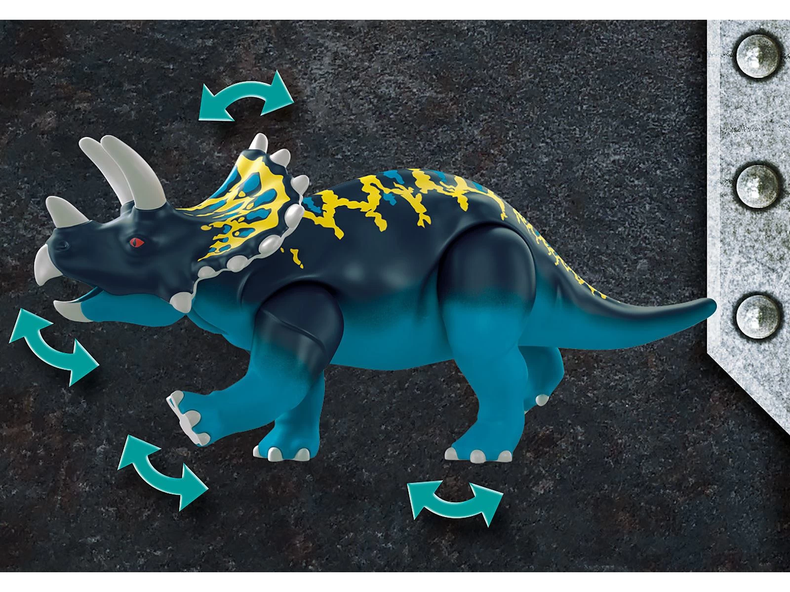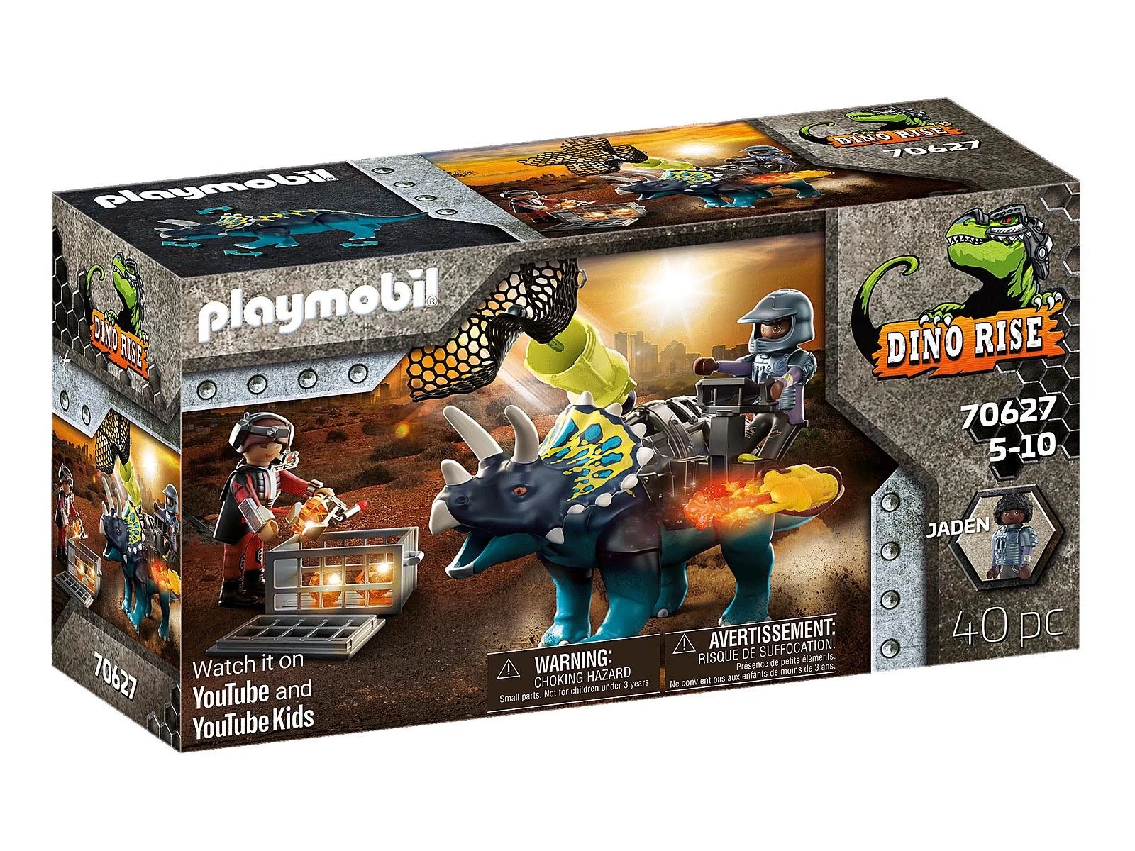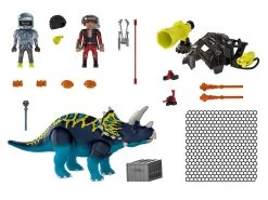 A veces el enemigo es mucho más pequeño de lo esperado, por ejemplo un mini robot. Estas pequeñas y desagradables máquinas intentan explorar los planes del equipo Dino Rise sin ser vistas y preparan a los grandes robots de combate para la batalla. Pero el equipo Dino Rise no se deja ver tan fácilmente. Para estar equipado contra adversarios grandes y pequeños, el Triceratops acorazado no sólo tiene un cañón normal, sino también un cañón de red trampa. Si su compañero Jaden lanza la red de captura en el momento adecuado, los mini robots quedan inmovilizados. Un fuerte poder dino-humano para misiones especiales complicadas.