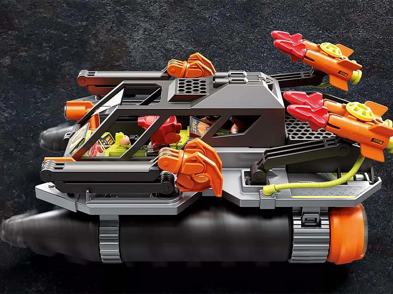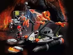 Con su poderoso vehículo de perforación, los villanos Ludmilla y Ralph de Comet Corp. se abren camino a través de Dino Mine. Los cabezales de perforación giran cuando se mueven, así como dos cañones funcionales y los brazos de agarre flexibles ofrecen diversión en busca de piedras de energía y la fuente de lava. Se incluyen 3 figuras, piedras energéticas y otros complementos. Dimensiones: 21 x 15 x 9,5