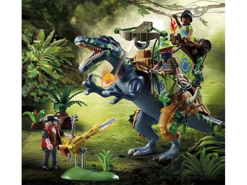 ¡Aventuras en trepidantes con los geniales sets Dino Rise de PLAYMOBIL! Junto con su equipado Spinosaurus, Ayla y Samu forman una gran defensa. Con valentía, el trío se enfrenta a todos los desafíos. Desde su posición en la espalda del dinosaurio, Ayla puede manejar el cañón de rayos y defenderse del villano con su cañón de pie. Samu se ha colocado de pie a un lado y se prepara para intervenir con su lazo. Con personajes originales, impresionantes dinosaurios y sofisticadas armaduras, el mundo de juego Dino Rise de PLAYMOBIL proporciona mucho material de juego lleno de acción. El regalo perfecto para todos los/las fans de los dinosaurios a partir de 5 años.