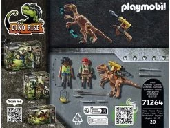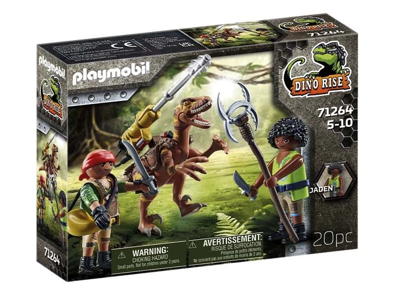 La aventura con el Equipo Dino Rise continúa. Ahora el equipo de adolescentes debe demostrar su destreza en la selva, porque incluso aquí acechan peligros para dinosaurios y humanos. Los villanos se han apoderado de un Deinonychus y lo han equipado con un cañón. Jaden no quiere quedarse de brazos cruzados y se enfrenta al villano. El mundo de juego Dino Rise de PLAYMOBIL ofrece todo lo necesario para vivir aventuras llenas de acción con personajes originales, impresionantes dinosaurios y modernas armaduras. Un regalo perfecto para Navidad, cumpleaños o simplemente porque sí para los/las fans de los dinosaurios a partir de 5 años.