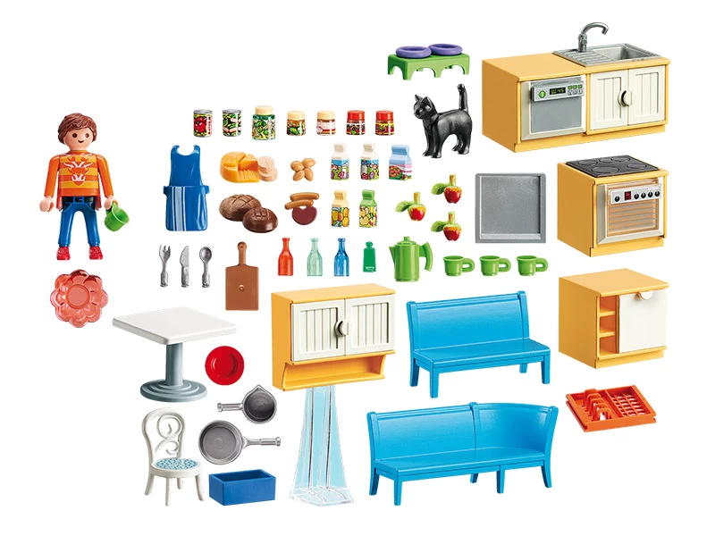 Los alimentos se guardan en el frigorífico y los platos en el lavavajillas o en los armarios. Incluye muchos accesorios.