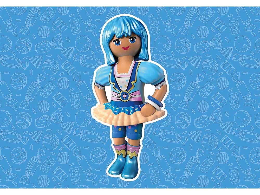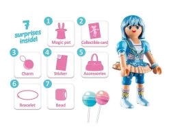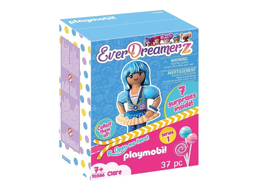 ¡Bienvenido al mundo de los sueños, Bienvenido al reino de EverDreamerz! Rosalee, Viona, Edwina, Clare y Starleen son cinco amigas con grandes sueños, cuando encuentran un amuleto mágico, se abre un portal a otro universo, la tierra de sus sueños. Primero, las cinco amigas viajan al mundo de los sueños de Rosalee, donde todo gira en torno a los dulces. Como a Clare le encanta comer rosquillas, le gusta mucho el mundo del azúcar. Al lado de Clare está su joven y encantadora alpaca azul. Clare es la cabeza inteligente del grupo y una verdadera genio de la lógica. Con su manera racional siempre ayuda al grupo a salir de los problemas con soluciones inteligentes. El set de juego contiene el personaje de EverDreamerz Clare con su alpaca azul, un globo, una rosquilla, un osito de peluche, una canasta y muchos otros accesorios azules. Como colgante, Clare tiene una donut azul. Para coleccionar: Cada personaje de Everdreamerz tiene su propia pulsera de silicona con un colgante, para coleccionar e intercambiar. La figura y sus accesorios se pueden guardar y llevar en la colorida caja.