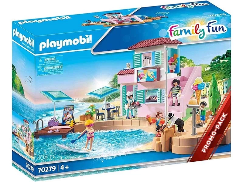 En sus marcas, preparados, ¡coged vuestro equipaje y salida a disfrutar de unas vacaciones llenas de aventuras con toda la familia!: ¿Qué puede ser mejor en verano que disfrutar de un delicioso helado de fresa o darse un chapuzón en el agua fresca? La heladerÃa PLAYMOBIL del puerto promete estos tentadores refrescos. Ya sea el helado para llevar o para disfrutar en la terraza de la azotea, aquà todos los paladares se llevan premio. Si te atreves, puedes desahogarte después practicando el surf de remo o dejar que el sol te caliente en el embarcadero.