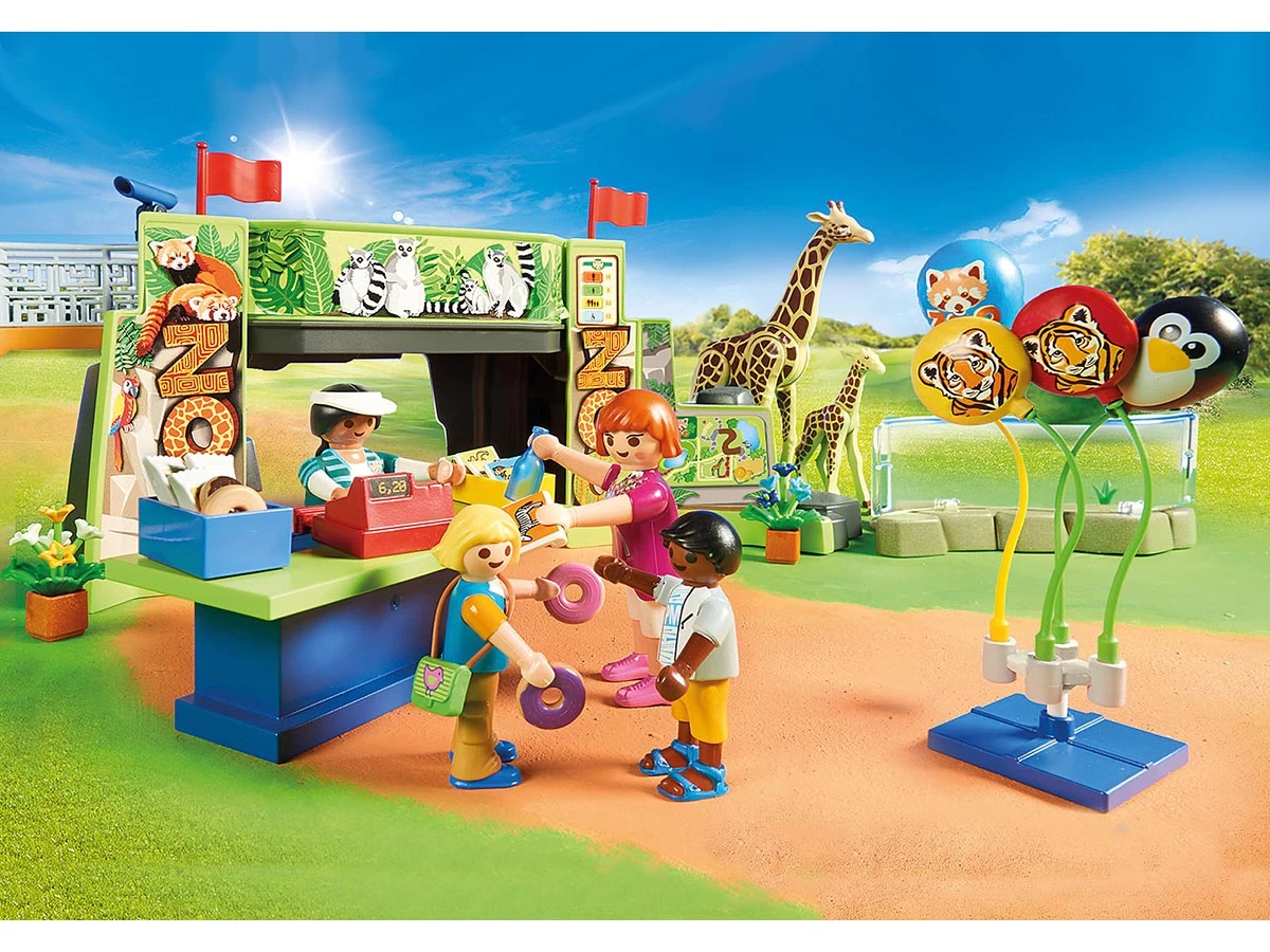 En el zoo los animales viven según la especie en su recinto. Los visitantes pueden observar a los animales desde muy cerca. Encontrarás recuerdos, bebidas, dulces y mapa del zoo en la entrada. La zona de observación se puede combinar con los sets 70343 Recinto Exterior de Leones y 70348 Extensión Plataforma de Observación Zoo. Otras especies se venden por separado.