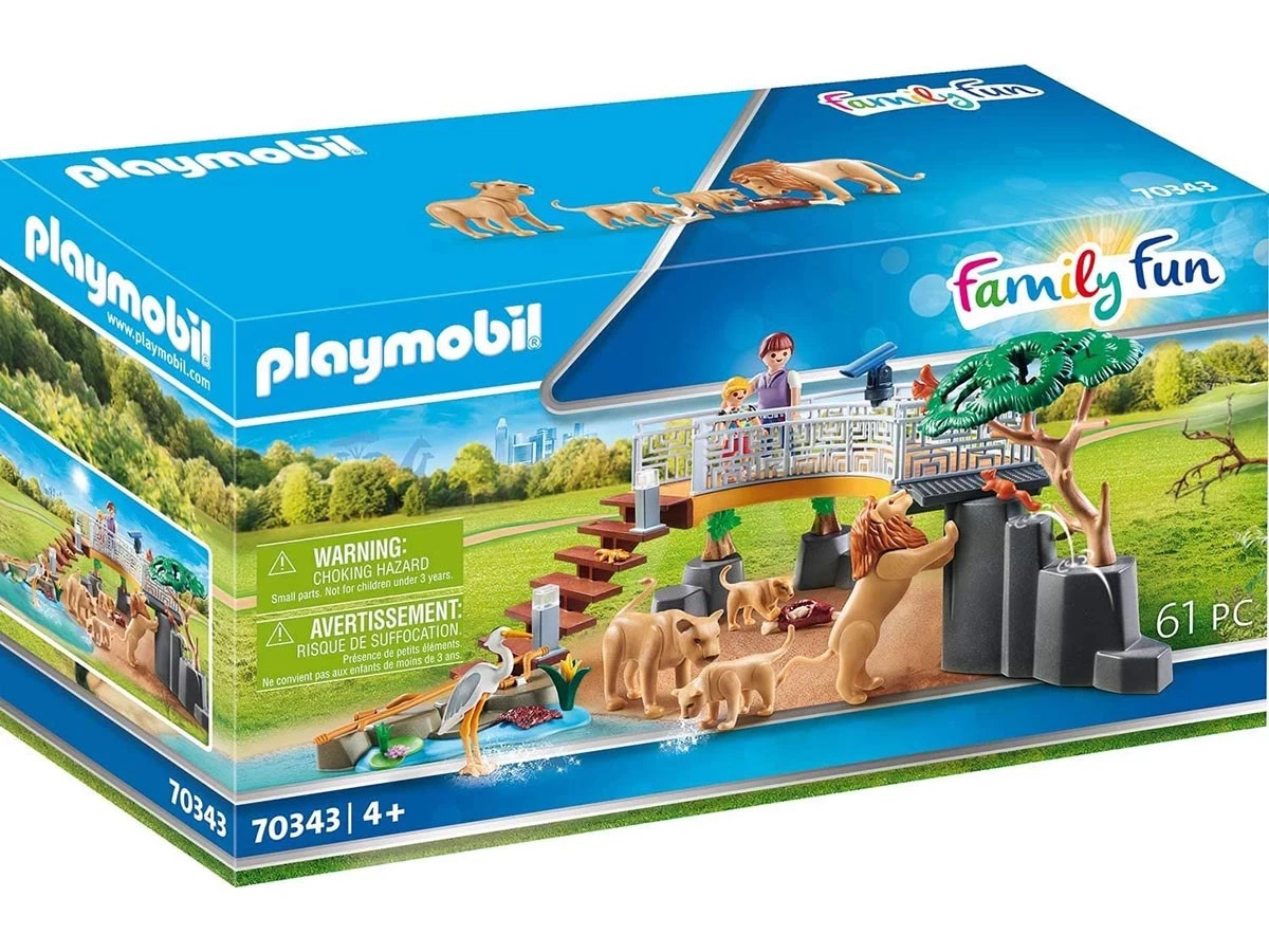 Desde la zona de observación, madre e hijo tienen una muy buena vista de los leones en el recinto exterior. El camino se puede combinar con el Gran Zoo (70341) y la Extensión Plataforma de Observación Zoo (70348).