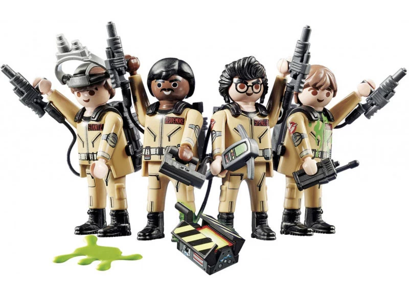 Conjunto de los 4 Cazafantasmas de la primera película con sus accesorios.