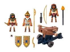Contiene tres figuras, dos escudos, arco, flechas, ballesta y flechas de fuego. La ballesta puede lanzar las flechas de fuego.