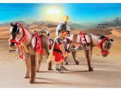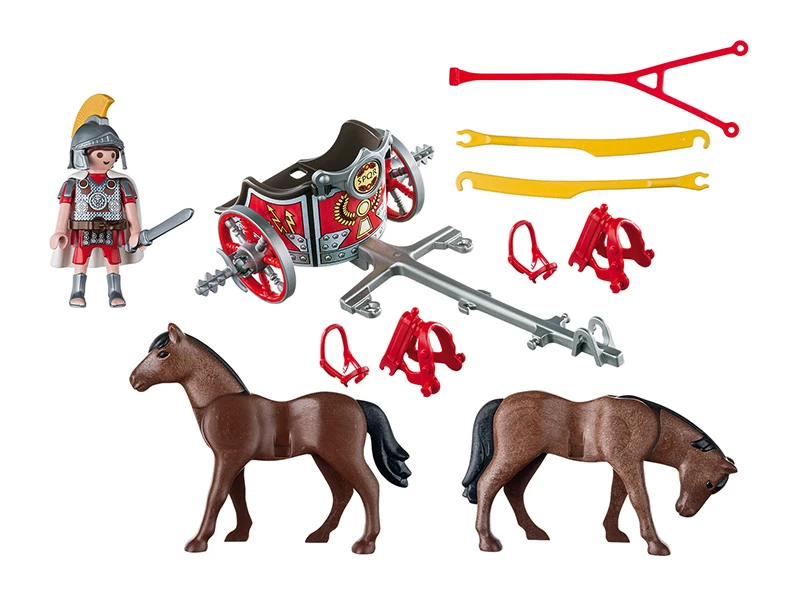 comes along with horse and cart and also weapon wheels as a defense against enemies. – both horses can be harnessed onto the chariot. – Using the feet clasps a total of two legionaries can ride along on the chariot.