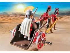Incluye una figura de romano con casco y espada y una cuadriga romana tirada por dos caballos.
