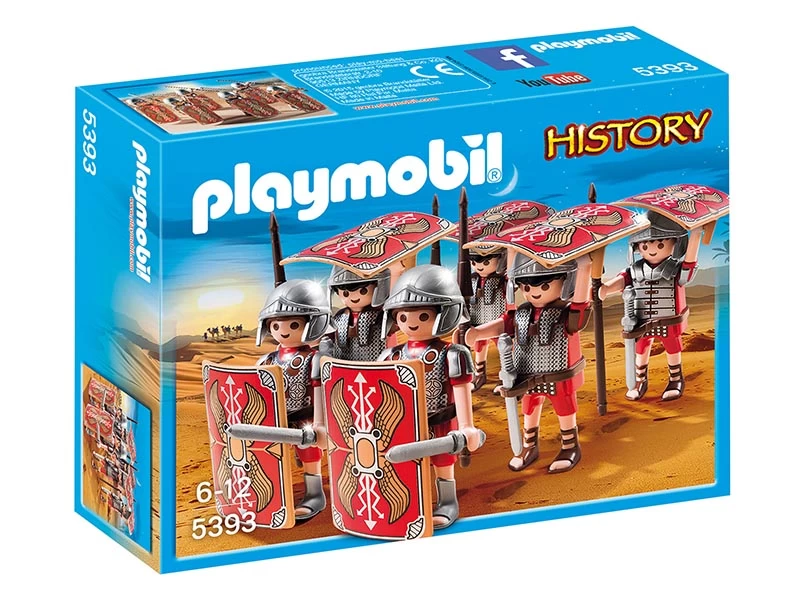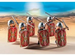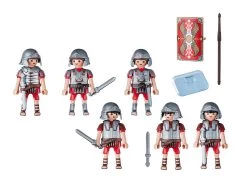 Conjunto de seis legionarios con espadas, escudos y lanzas. El set incluye seis soportes para encajar las figuras y se mantengan en pie.