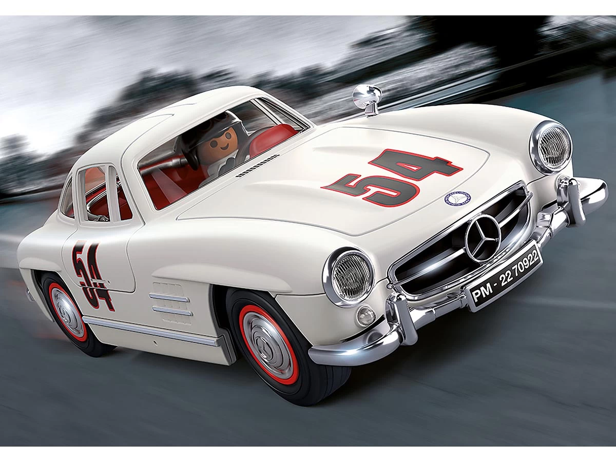 Presentamos el Mercedes-Benz 300 SL, un ícono de automóvil deportivo clásico de la década de 1950 con legendarias puertas de ala de gaviota. Cuando se presentó en el International Motor Sports Show en Nueva York en 1954, el Mercedes-Benz 300 SL fue considerado el automóvil deportivo más rápido de su tiempo, alcanzando velocidades máximas de 228 mph. Con sus puertas de ala de gaviota, inyección directa de gasolina y bastidor tubular de celosía, el 300 SL es muy reconocible. La receta para el éxito del 300 SL es su combinación perfecta de carácter rudo combinado con una pizca de lujo y extravagancia. Y ahora, el deportivo de ensueño del siglo XX aparece en versión PLAYMOBIL, con legendarias puertas batientes de ala de gaviota, parachoques y parrilla del radiador cromados, y accesorios de los años 50. Abre fácilmente las puertas de ala de gaviota para sentar a las figuras. Hay espacio más que suficiente en el maletero para el almacenamiento. Con la ayuda del tablero de boxes, el piloto se mantiene informado sobre su posición durante la carrera.