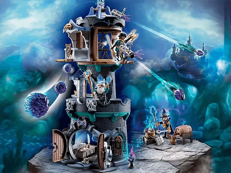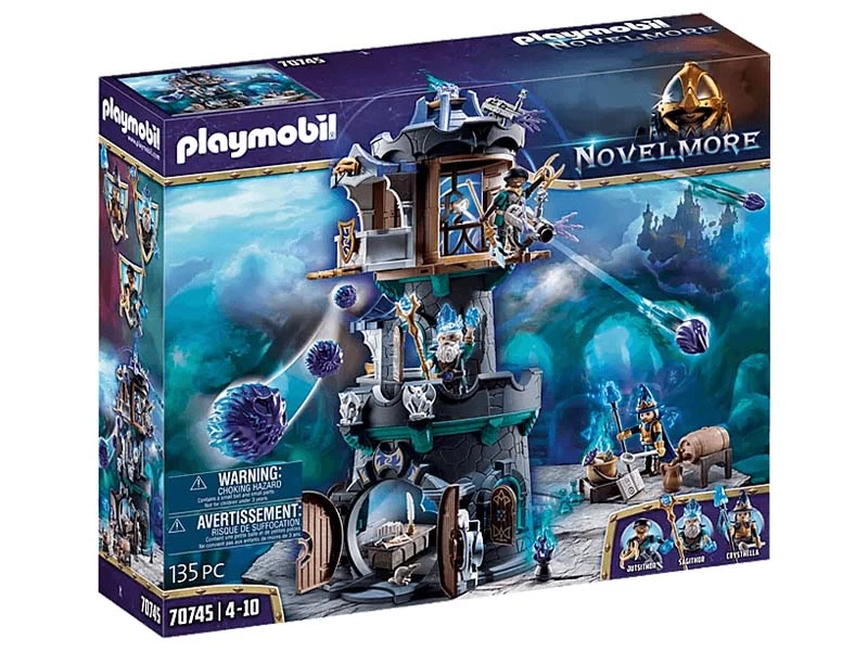 ¡Explora el fantástico mundo del poderoso mago Timithor, el Guardián del Tiempo! En la legendaria Torre del Mago de Violet Vale está el taller de magia de Sagithor, amigo y compañero de Timithor. Allà es donde se practican los hechizos y se elaboran las pociones mágicas. La mÃstica torre guarda muchos secretos, incluso un valioso tesero está escondido aquÃ. Sin embargo, capturar los cristales brillantes es casi imposible, porque la puerta de la planta baja está bloqueada por una cerradura mágica que solo se puede abrir por magos reales. Desde la torre, la hechicera Crysthella vigila el peligro a través de sus prismáticos. Si los demonios o los magos oscuros se acercan a la torre, serán recibidos con proyectiles. El set de juego incluye a los magos de Novelmore Sagithor y Jutsithor y la hechicera Crysthella, un mago de la torre con un mecanismo giratorio y escondite secreto, asà como un cañón de disparo, un caldero mágico, un libro de hechizos, cristales y muchos más extras por un juego mágico.