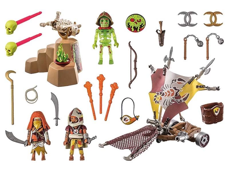Los Ahari, un pueblo inteligente, que vive en el desierto. Gracias a su ágil vela, pueden aprovechar el viento y lanzarse por las dunas en atrevidas maniobras. Con la red desplegable pueden atrapar a los atacantes o buscar en las dunas escorpiones y su valioso veneno. Incluye nuevos proyectiles de esponja y personajes Ahari.