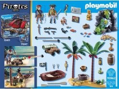El Promo Pack incluye una figura de pirata PLAYMOBIL, un esqueleto, una bandera con calavera, un loro, un mono beb茅, un bote con remos, un cofre con monedas, sombrero de pirata, mapa del tesoro y otros extras para emocionantes juegos de rol de piratas en la habitaci贸n de ni帽as y ni帽os. El cofre del tesoro puede ocultarse y cubrirse con la cortina giratoria de hojas. El funcional ca帽贸n es m贸vil y se carga desde la parte delantera. El set incluye tres proyectiles. Juega con este Pack Promocional solo o con amigos y amigas o comb铆nalo con otros sets de PLAYMOBIL.