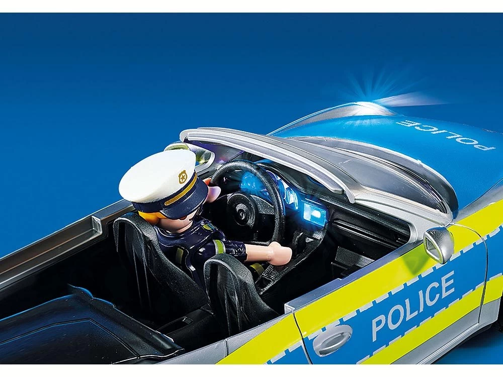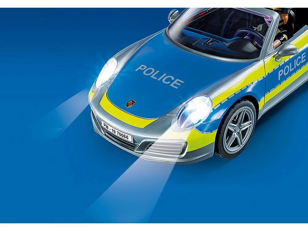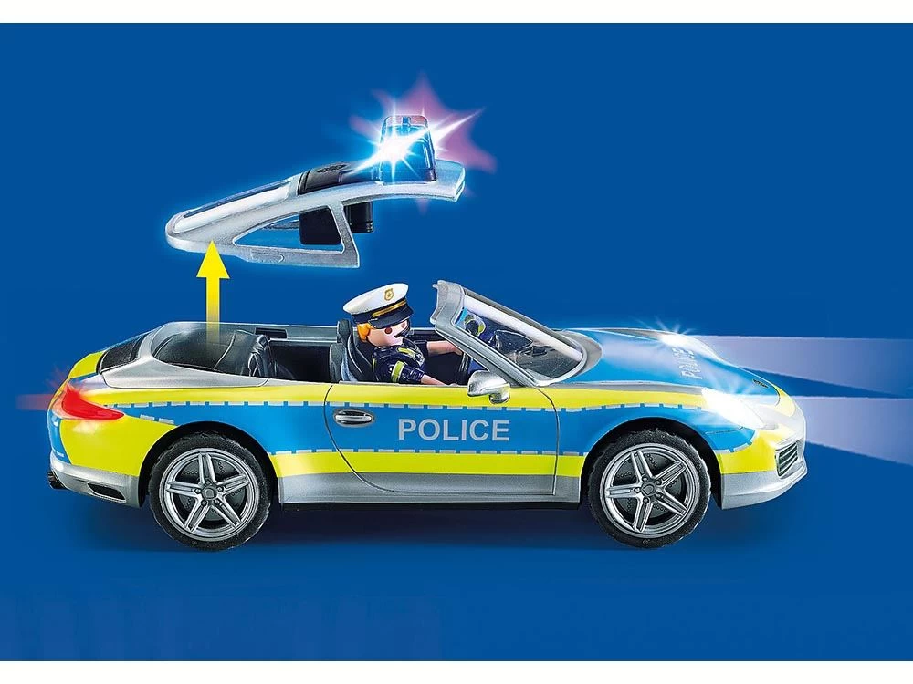 Con luz y sonido (se neceSítan pilas 1×1,5-V-AAA), contiene muchos accesorios. Luces delanteras, traseras y en el salpicadero que parpadean (se requieren pilas 3 x 1,5 V). Con techo extraíble. DimenSíones del Porsche: 26×11,5×9 cm (LxPxA).