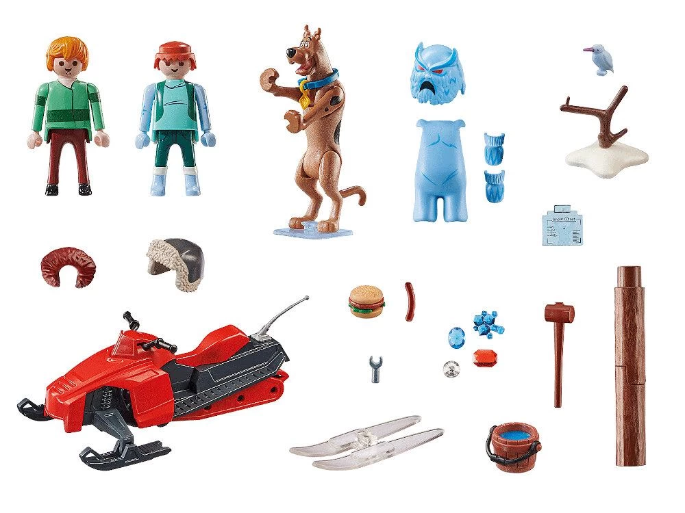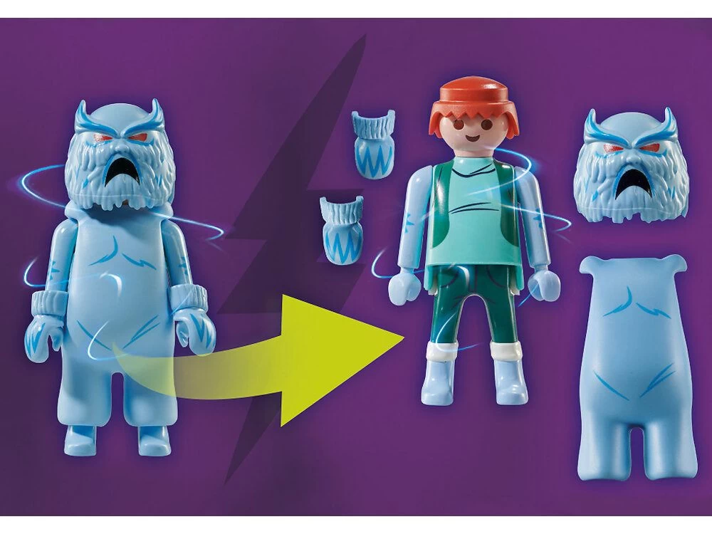 Incluye Scooby y Shaggy con moto de nieve. El fantasma puede ser desenmascarado. ¡Scooby y Shaggy con ropa de invierno para coleccionar!