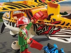 Espectadores de todas partes vienen a ver Air Stuntshow Avioneta Tiger volar por los aires. El dise帽o de rayas de tigre es fascinante de ver mientras se sumerge a trav茅s de las nubes. El piloto muestra sus habilidades mientras vuela alrededor de los altos pilones con la mayor precisi贸n y realiza sin esfuerzo maniobras de vuelo atrevidas a alturas deslumbrantes. Desde tierra, el mec谩nico sigue el espect谩culo y ya se prepara para inspeccionar el avi贸n despu茅s de aterrizar. El avi贸n tiene capacidad para dos figuras y contiene un compartimento de almacenamiento en la puerta trasera. El juego incluye dos figuras, un avi贸n con h茅lice giratoria, una lata de gasolina, un pil贸n con ventosas para asegurarlo a la superficie, equipo de vuelo y otros accesorios. Dimensiones del avi贸n: 12,2 x 11,8 x 4,7 (largo x ancho x alto). Dimensiones del pil贸n: 3,9 x 3,5 x 13,8 (largo x ancho x alto).