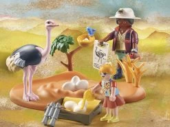 Descubre los productos sostenibles de WILTOPIA de PLAYMOBIL. Después de su aventura en la región amazónica, acompañamos a la exploradora familia Palmer y a sus tres hijos a su próximo destino: ¡el Serengeti africano! AquÃ, la familia estudia la fascinante flora y fauna de esta extraordinaria región, como el avestruz. La familia de avestruces está a punto de tener descendencia. Papá avestruz se encarga del cuidado de la crÃa: se puede quitar la parte de la pata para que el avestruz pueda “incubar” los huevos. Con nuevo tamaño de figura para niños y niñas de 5,75 cm.